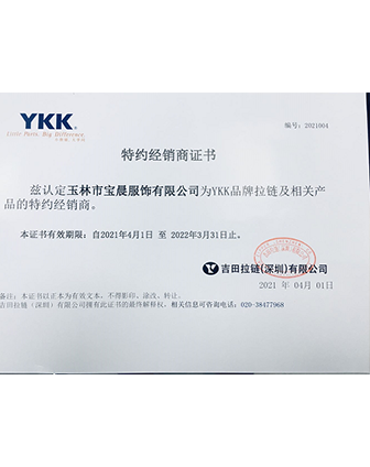寶晨與國際知名品牌YKK簽約成為長期合作伙伴,致力于經營YKK出品的各種拉鏈;